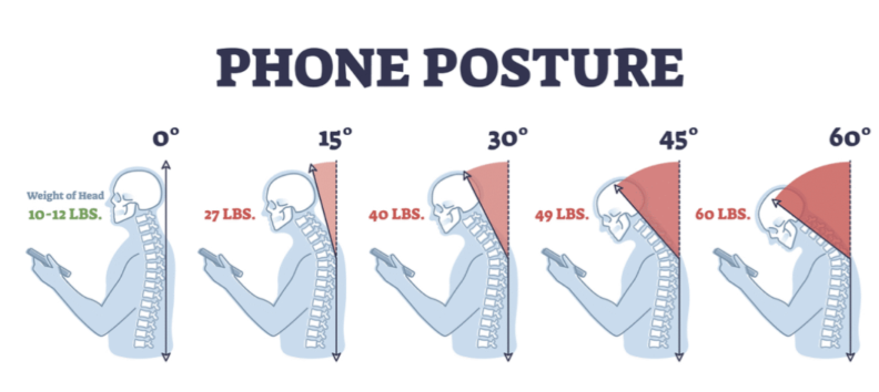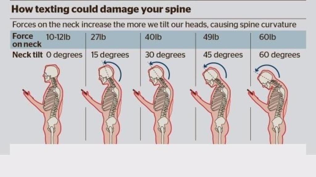 The more you forward your neck, the more load over your neck will increase