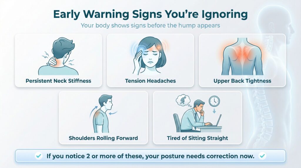 That visible “hump” you see? It’s not just fat—it’s your body trying to stabilize a spine that’s mechanically overloaded.