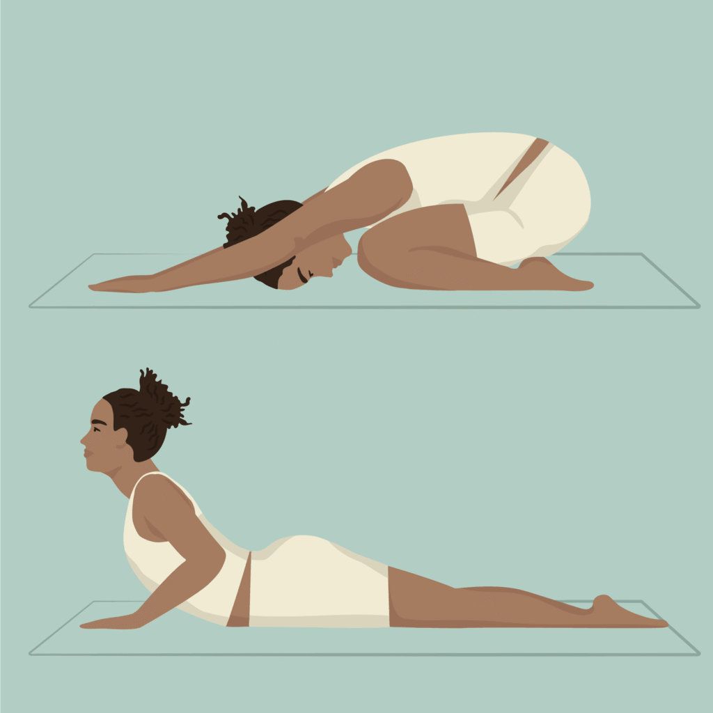 - Child’s Pose: Relieves spine and hip pressure