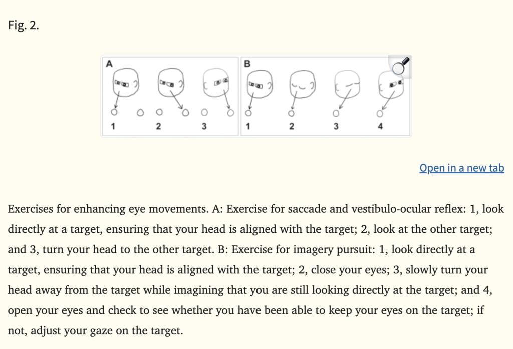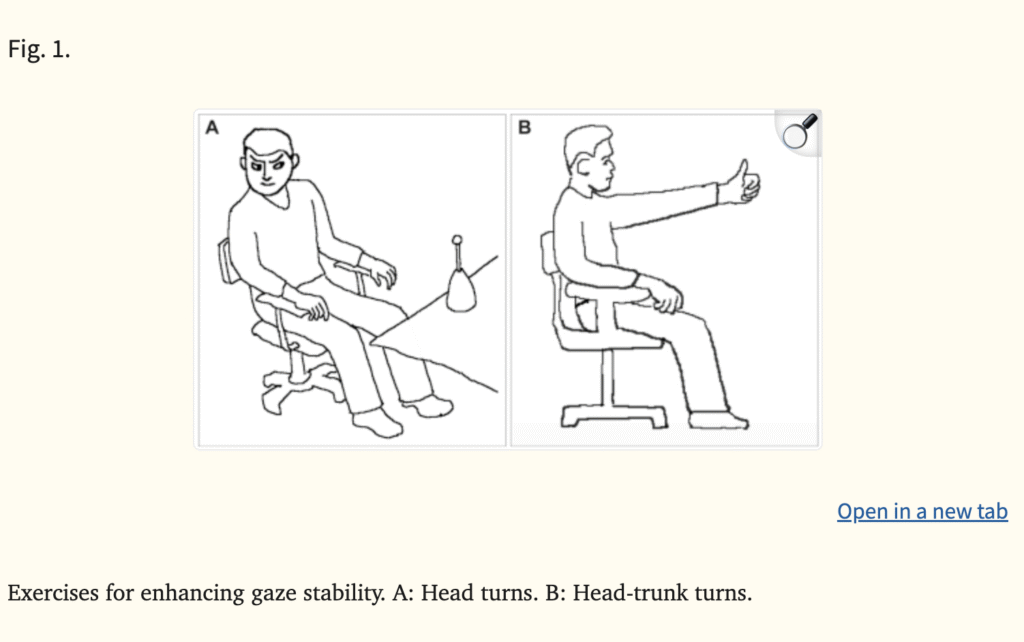 - Fixing your eyes on a target while moving your head side to side